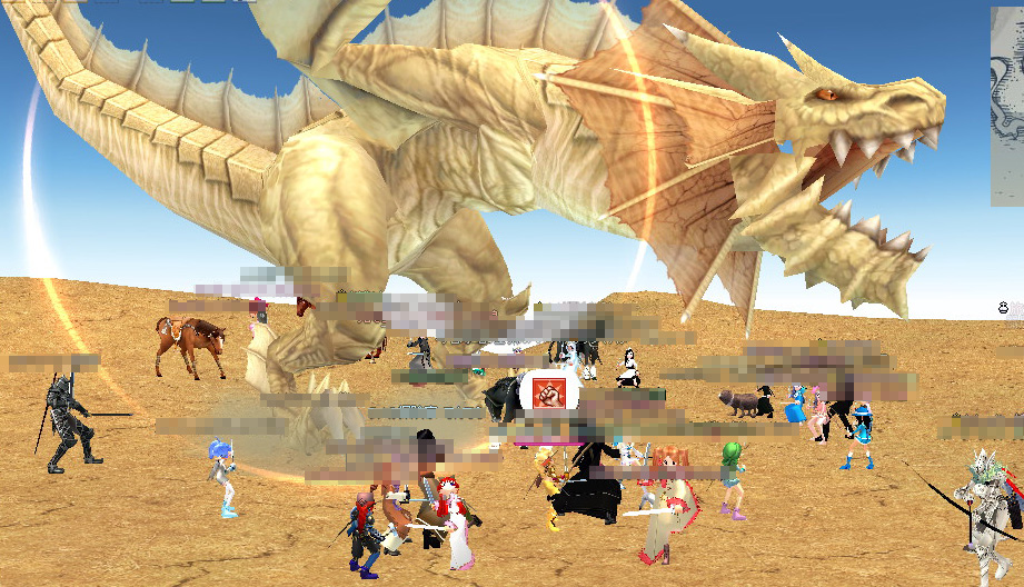 今朝は、マビノギで初めてデザートドラゴンと戦いました。大型モンスターは何種類かいるんだけど、こいつは週に一度だけしかでないので、今まであったこと無かったです。