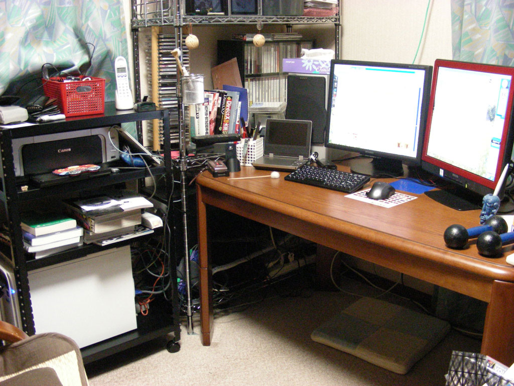 三連休を使って部屋を片づけました。と言ってもこの写真じゃわかりませんが、2段のカラーボックス本棚一つを破棄して、パソコンの入っているラックを幾分小さいのにしています。おかげで、部屋がかなり広くなりました。ただ、収納を減らしても物を減らすのが間に合って無くて、まだ雑多としています。