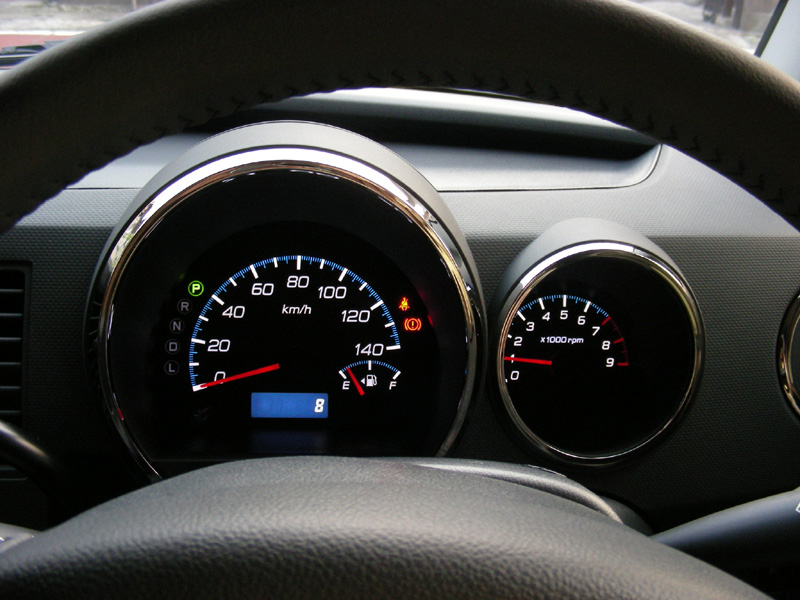あと、思ったよりいいのが、ディスチャージヘッドランプ。スティングレーは、通常がディスチャージランプで、ハイビームの時だけ通常のランプがつきます。通常のランプは、円錐状に広がっていきますが、このランプはかなり範囲が広くて側道とかもよく見えますね。光量もかなりあり、bBのヘッドランプ+フォグくらいの明るさがあります。