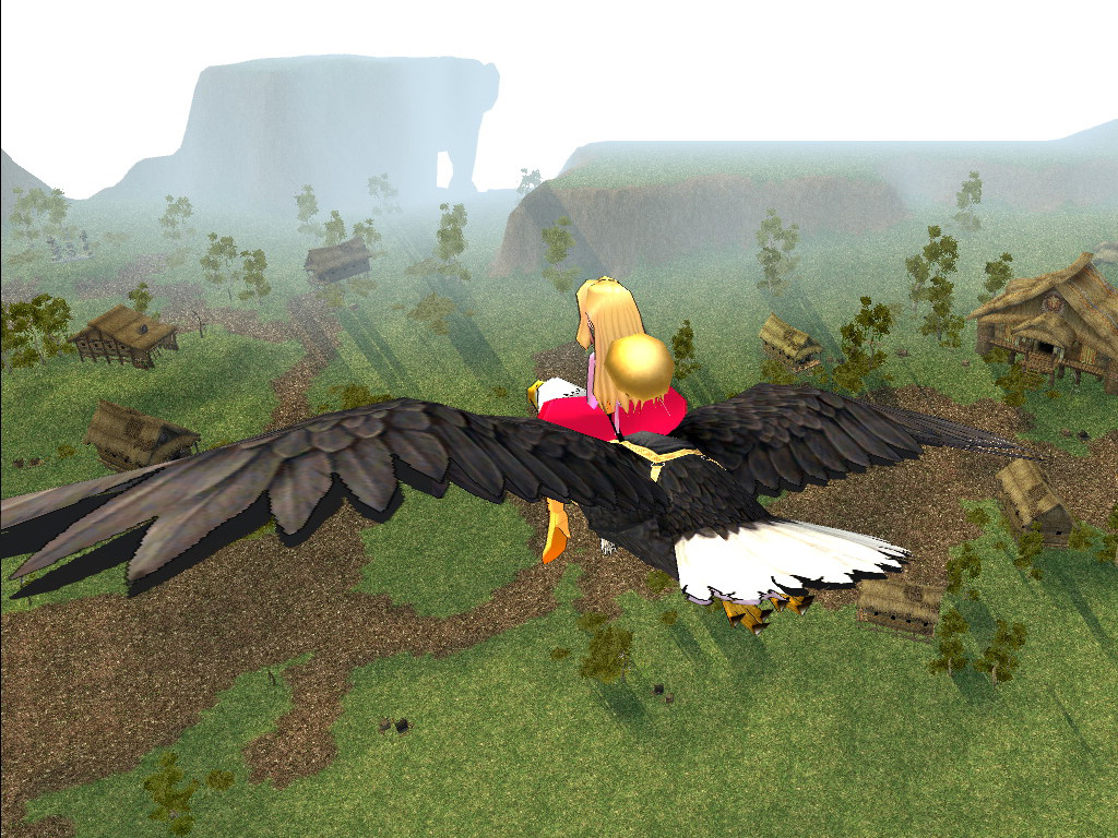 ネットゲーのマビノギで空を飛べるペットが導入されました。飛べる場所は限られてるけど、なかなか楽しいです。まぁ飛べること以外特に戦闘が出来るとかは無いんですがね。 今後、空中戦とか、空飛ぶ街とかみたいなのが導入されると面白いかも?