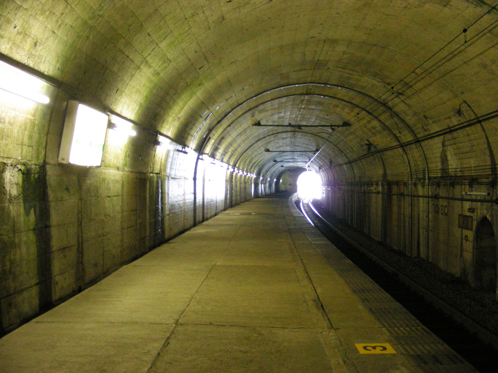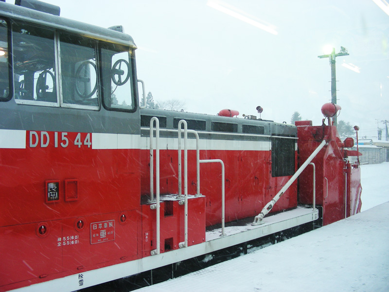 駅は上りと下りでホームが別にあり、一方はトンネルの中、もう一方は地上にあります。レールが雪に埋まってて、列車が止まってるんじゃないかとも思いましたが、雪を蹴散らしてトンネルに入ってくる列車の迫力はかなり感動物ですよ。