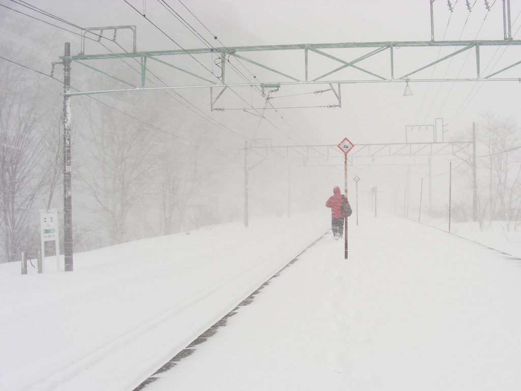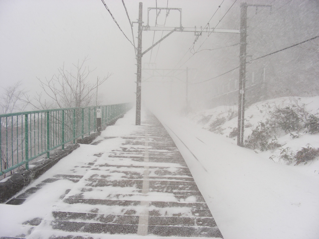 ちなみに湯桧曽に居たときは顔に当たる雪が痛いくらいの猛吹雪で、視界も10数m程度です。ホームの端に立つと、駅舎が見えませんw