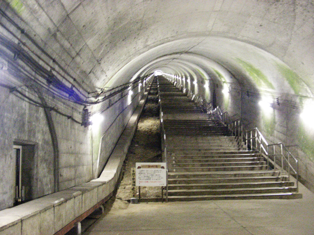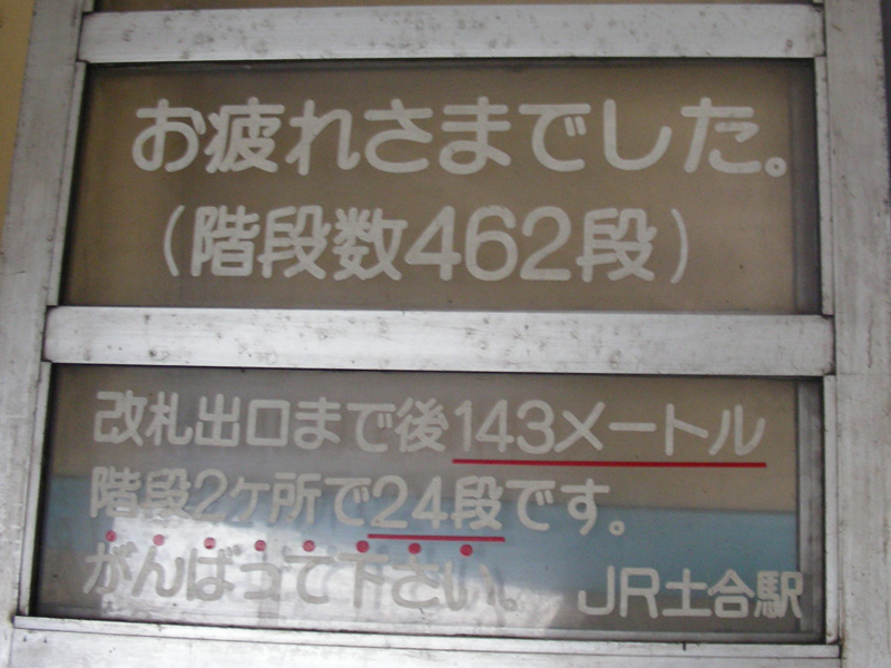 土合はなんと言ってもこの階段!改札に出るのに、462段(標高差70.7m)の階段を一気に上らなければなりません。途中で休憩用のベンチがありますが、尋常な段数では無いです。