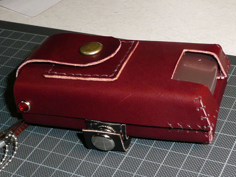 ベルトポーチ型(タテじゃなくてヨコに引っ付く)ですが、取り出さなくても開けるギミックが施してあります。作成は設計も含めて2日間しかかけていません。なので、全体的にちゃっちいですが、落ち着いたデザインになりました。
