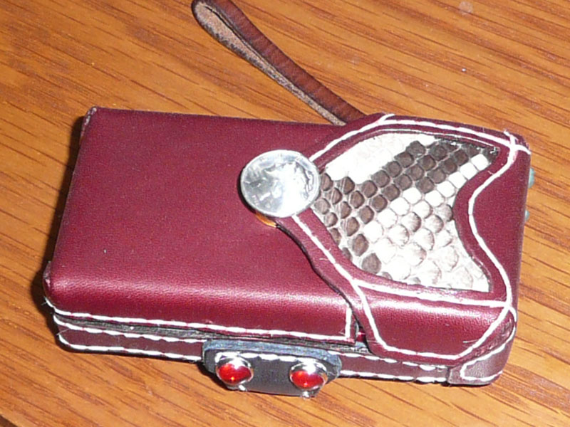 今回は写真のように、エンジのオイルレザーにコブラ革、海外のコインをあしらったコンチョという一見落ち着いたデザインです。