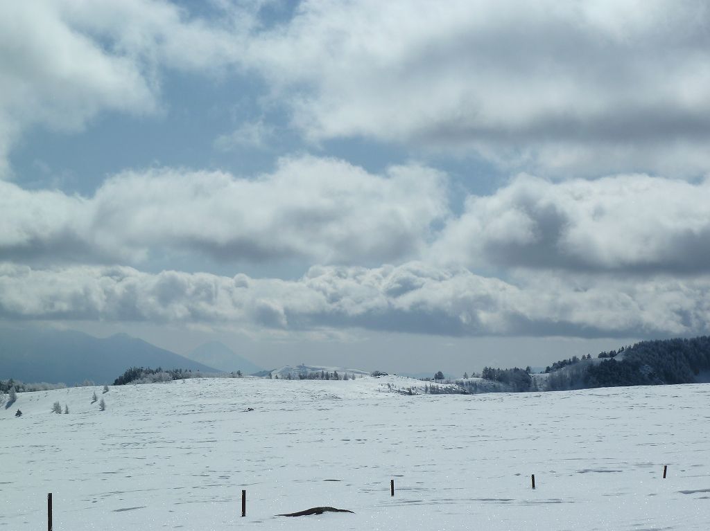 さて、美ヶ原の方はと言うと、今回は曇っていました。だんだん晴れてきましたけどね。雪はとにかく前回よりすごかったです。