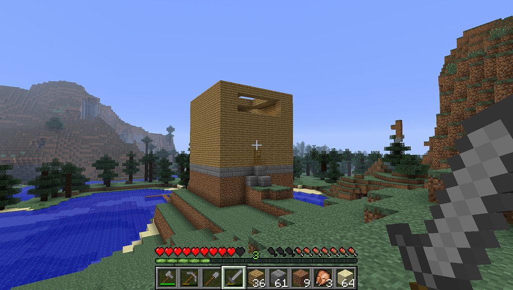 - ワークベンチを使って、斧やつるはしを作る。(剣も作れる)