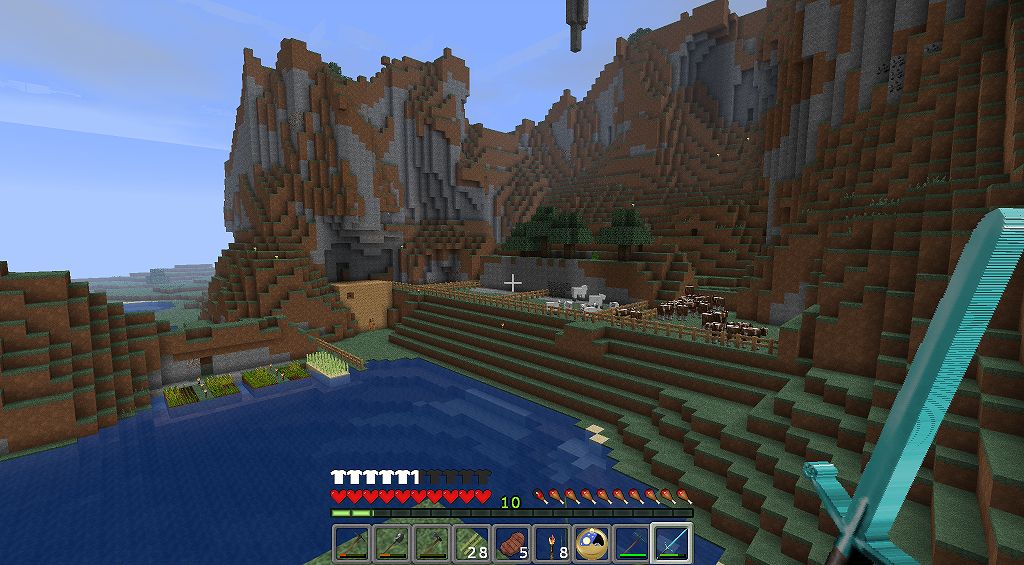ゲームを開始すると、世界が生成されてその中に自分が出現します。この世界はトルネコみたいにランダムで生成されますが、基本となるシード値という数値を元に生成されるので、同じシード値を指定してやれば、全く同じ世界が生成されます。