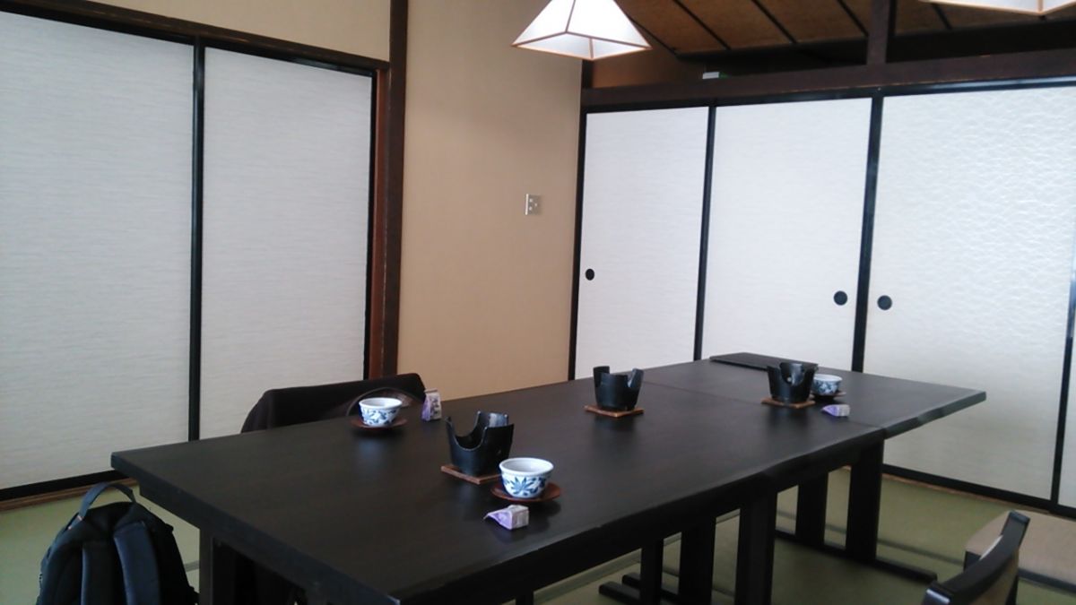 部屋は当然宿泊用の部屋では無いですが、どうも宴会用の個室がたくさんあるようで、それを活用しているみたいです。和室なのにテーブルという珍しい部屋。かなり広々としてて結局床で雑魚寝をしてましたが。