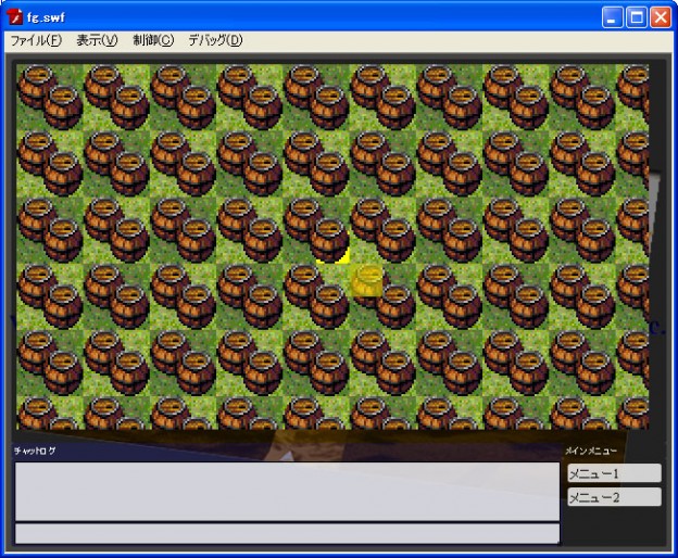 今まで、なんかいろいろ作っりつつもなんも公開してませんね… って、今回作成してるflashはよくよく考えると簡単にwebで公開できるじゃん! ってことで、作成中のを公開しちゃいます…と、言っても、まだ以下の事しかできません。 地図があって無いようなもの。 地図上をクリックすると、一応カーソルの方向に移動する。 ウインドウはあくまでサンプル。一応、タイトルをドラッグで移動、チャットウインドウ側は右下をドラッグでリサイズくらいはできる。 ってくらいしか出来ません。なお、テストなんてロクにしてないので、環境によっては挙動不審になるかも?Flash PlayerはVersion9じゃないと動かないと思います。 壁紙は昔作ったWebゲームのまんまなので、気にしないでくださいw そんな訳で以下のアドレスからアクセス出来ます。 http://pub.d77.jp/fg/test1/fg.html