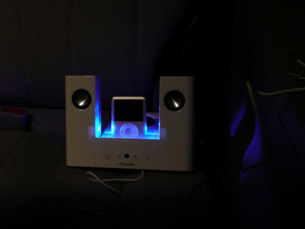 blog-2008-05-05-P1010573関係無いですが、今回はiPod用のスピーカを持って行きました。長距離なので電池もたないかなーと思ってたけど、内蔵電源+スピーカ用電池4本だけ大丈夫でした。なんか、青く光って綺麗だし。